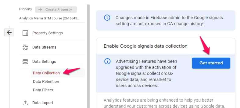 Demografische gegevens zijn niet met terugwerkende kracht. Als je Google signals op enig moment wilt uitschakelen, ga je naar de beheerder van jouw GA4-property > gegevensinstellingen > gegevensverzameling en schakel je de functie uit.