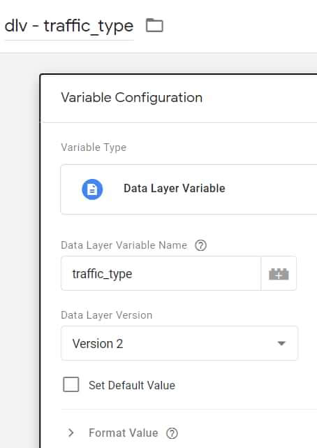 Stap 3 – Maak een lookup-tabel in Google Tag Manager om de traffic_type parameter te overschrijven
